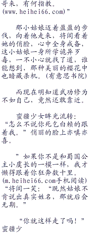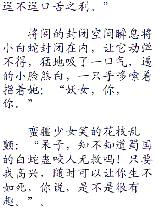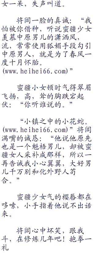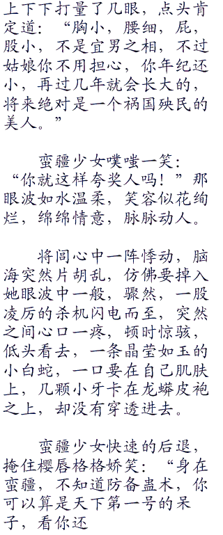 蛮疆少女格格娇笑:“看你呆头呆脑的,原来这么有本事。”