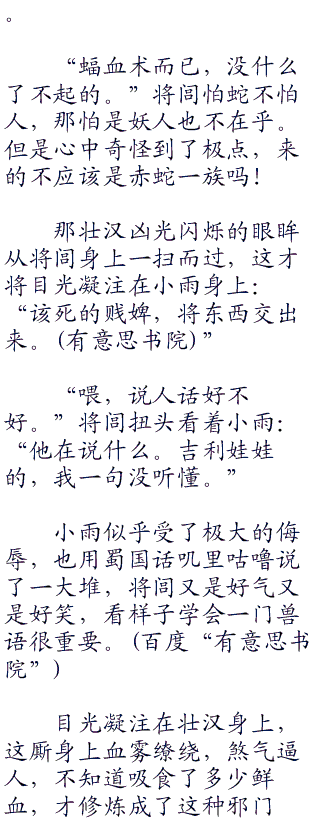 将闾不等另一条巨蟒反应过来,身体电射而至,左手抱住小虞的蛮腰,冲天跃起,巨蟒尾巴点地,身体窜跃而起,张开巨口向着将闾边吞。