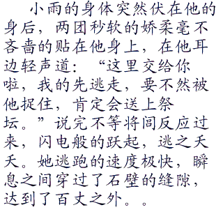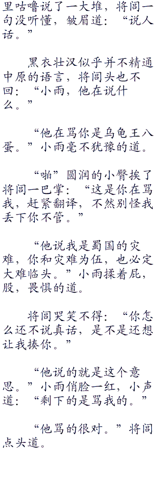 小雨缩在将闾怀中,娇俏的吐吐丁香:“还说你怕蛇,杀起蛇来比谁都狠。”如兰的香气喷吐在将闾脖子上