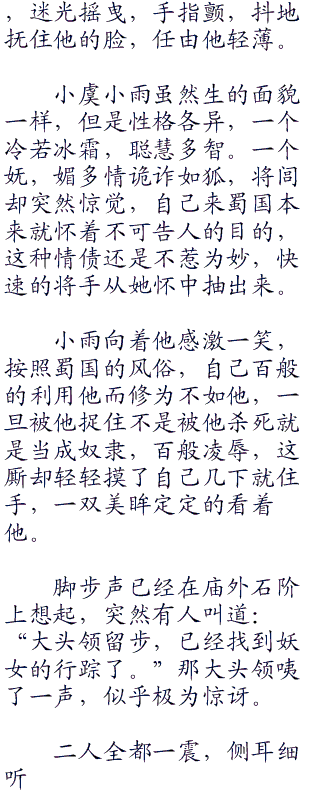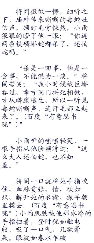 小雨脸上露出惧色,反唇相讥道:“难道他们就肯放过你吗。”站起身来,扑灭篝火,想要跳出小庙脸上却露出踌躇之色。
