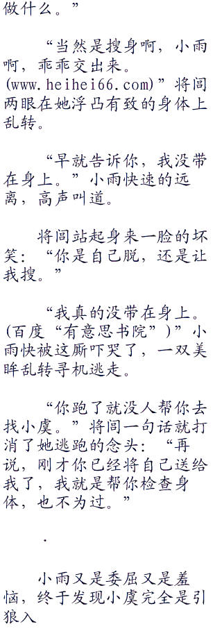 “你既然敢把自己送给我,还有什么不能相信的。”将闾一笑:“我虽然不是好人,但做事也是有原则的,今天晚上你这样哀求我帮你救小虞,肯定有苦衷。”