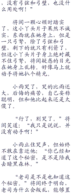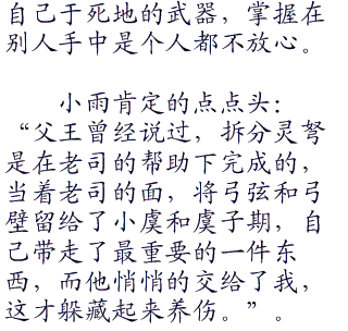 小雨幽幽一叹,仰头看着飘雨的夜空,好半响才道:“因为灵弩。”