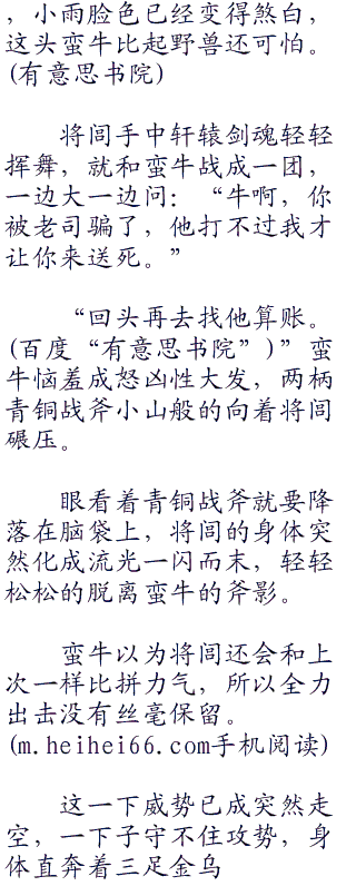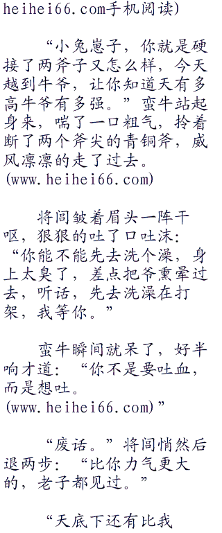 “喂,你们两个不许逃跑,今天老子走运了,哈哈哈。”蛮牛自言自语,本来以为自己突然显身,这一男一女必定吓得惊慌失色转身就逃,那晓得眼前这个小人根本就没多看自己一眼,而是扭头看着小雨,笑问道:“这又是那位。”