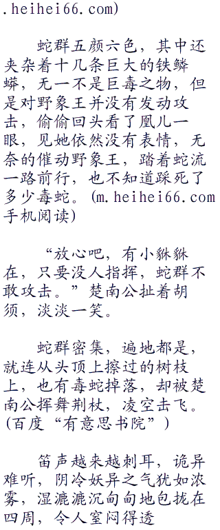 一路之上不断有宿鸟惊飞,赤虎心中更加的安定,有鸟就说明铁鳞蟒和巨鼠全都退去。笛声逐渐的凄厉清晰起来,赤虎心情反而更加的沉重,扭头看了一眼亭亭玉立在象背上的凰儿:“大人,好像是赤蛇一族在围猎。”