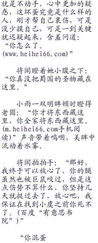 将闾又是好气又是好笑,这小丫头片子为了不让自己搜身,竟然摆出这种姿势,将布条裹向她的身下。