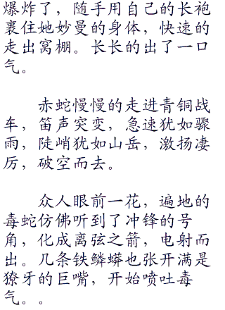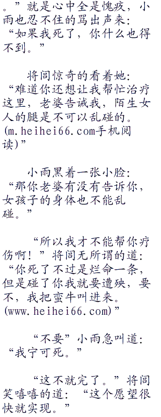 小雨身穿短裙,小腿上的伤口已经处理过了,只有几处在山间奔跑留下的伤痕和淤青,这种伤死不了人,但是大,腿上,却留着巨鼠啃咬过的痕迹。
