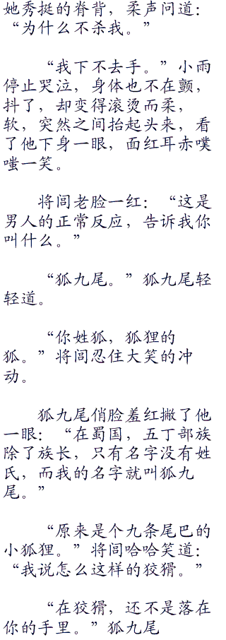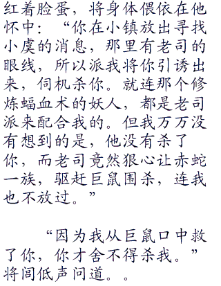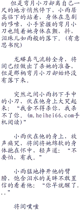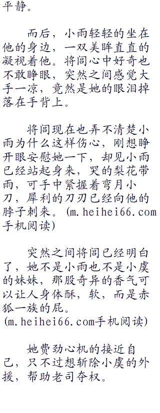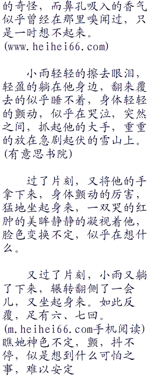 那小手柔,软如棉,带着一股奇异的香气,轻轻地摩挲着,那神色无比的温柔,突然之间,收回了小手,抱膝坐在他身边,脸上满是悲伤之色,大口大口的喘气,眼中竟然滴落出泪珠儿。