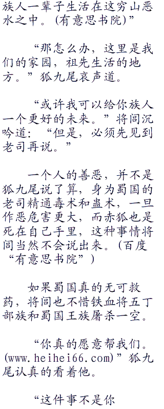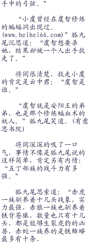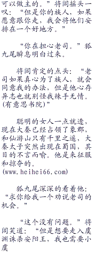 狐九尾吓了一哆嗦,追问道:“她也是你的女人。”忽然之间又垂下泪来:“原来你真的是为了三足金乌而来。”