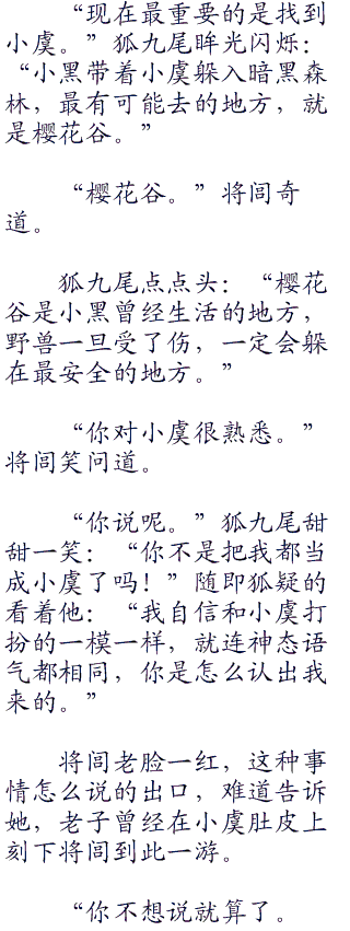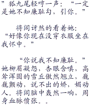 狐九尾笑靥如花,低声道:“好哥哥,我喜欢听你这般叫我。”俏脸突然飞红,彷佛要透出水来。