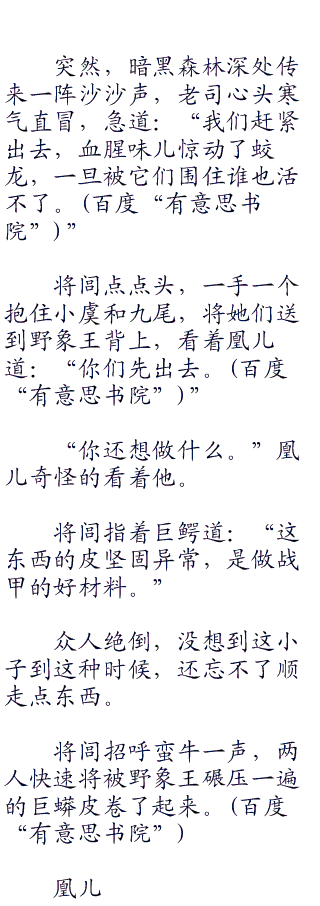 将闾点点头,所谓的暗黑森林蛟龙就是巨鳄,这种动物喜热帕寒,但自己却实在等不了冬天到来。