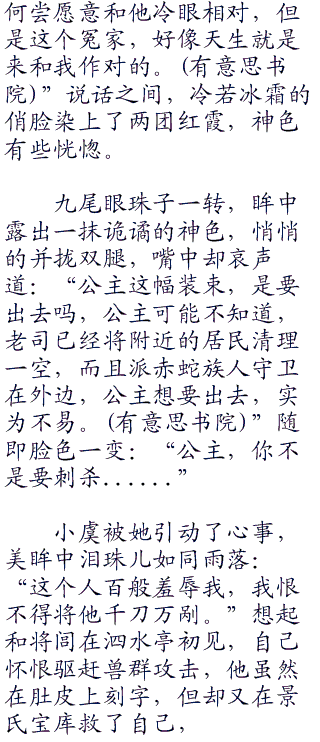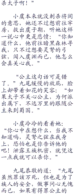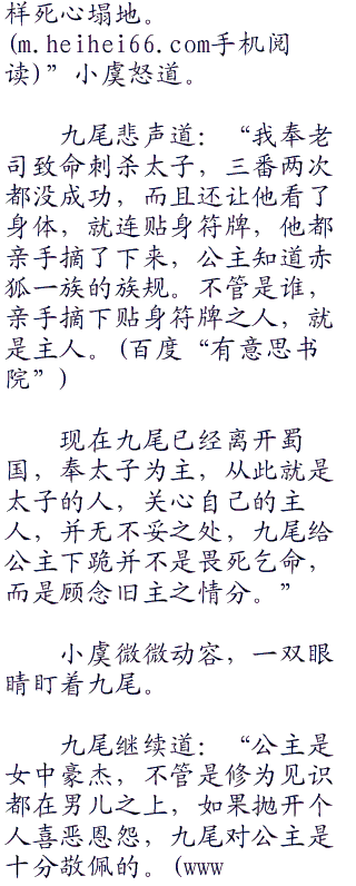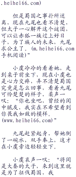 狐九尾含泪点头:“现在不管是王族还是老司,都不能信任,除了太子,我还能相信谁。”
