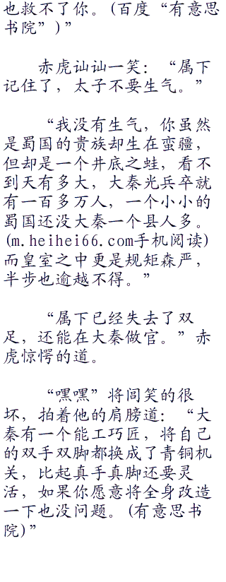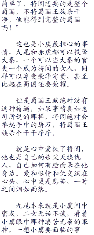 我身边的女人每一个都掌握着生杀大权,比起所谓的蜀国王族权利都大,就是大秦两位上将军都没一个敢对她们不敬,而你想要追随在我身边就要遵守这些规矩,如果凰儿她要想杀你,只不过是一念之间,到时候我