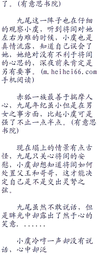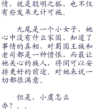 将闾愁眉不展,赤虎却放下了心事,嘿嘿笑道:“赤狐一族的女子,不仅聪明绝顶还有一身冠绝天下迷死人不偿命的媚功,九尾是赤狐的嫡传弟子,一定更加了的。”