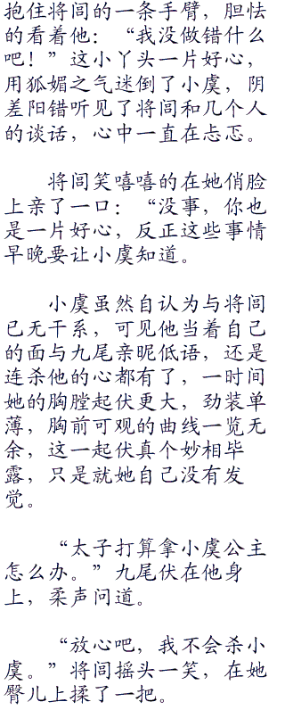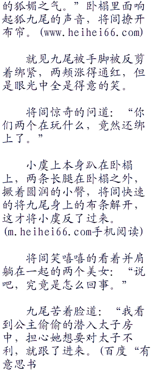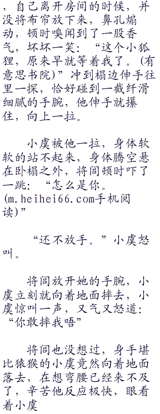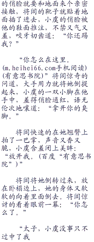 楚南公告退走了出去,将闾摇摇晃晃的走向卧榻,心中也感到奇怪,屋子里什么味儿,好像女人身体中的香气。而且身体有点酸软无力,就是凰儿吹箫的功夫在厉害,也不可能让愤怒的小鸟这样疲软啊!