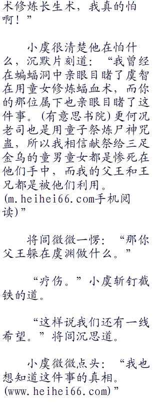 但是逃又能逃到那里去,更何况小虞也想揭开虞渊的谜团。那个慈祥和蔼的父王,一心为了让蜀国强大起来的父王,究竟有没有拿童女修炼长生术。不弄明白小虞如何甘心。