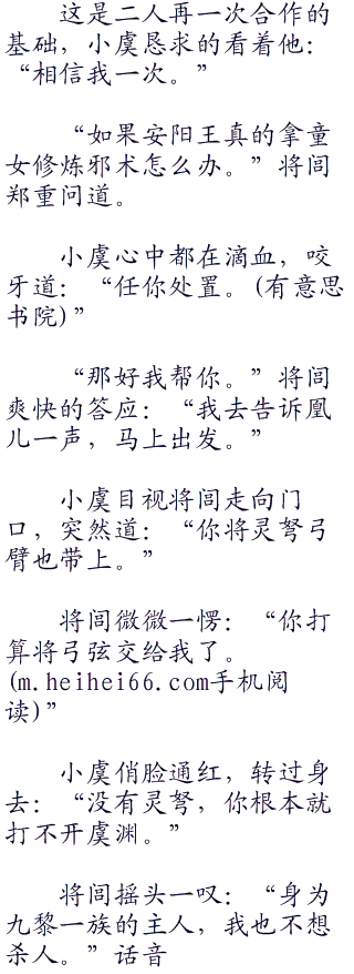 但两个人实在是没有可能,只要是安阳王在用童女修炼邪术,将闾绝对不会放过他。杀了他爹也没道理放过他儿子。毁家灭国之恨杀父杀兄之仇,本来就没调合的余地。