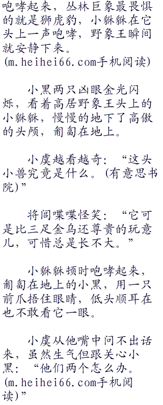 小虞顿时被他气的说不出话来,但还没办法反驳,野象王萌萌头顶上是什么玩意儿,小虞现在也看不明白,但唯一可以肯定的是,那头漂亮到极点的小兽绝对不是普通玩意儿。