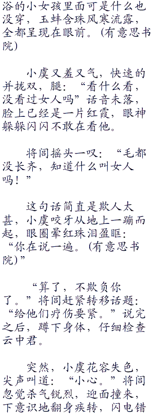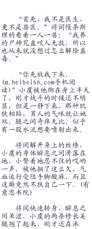“看什么看,没见过这样英俊的男人吗!”将闾鄙夷的看了它一眼:“要想死的快,就多活动几下。”