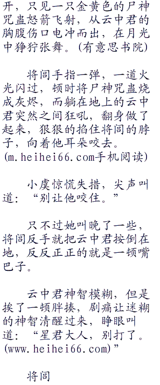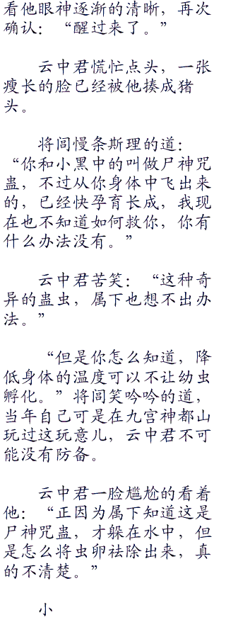 小黑和云中君藏在冰冷的溪水之中,就是为了阻止血肉中的蛊虫孵化,而正常的体温却可以让蛊虫孵化的速度加快,一旦蛊虫破体而出也就是命丧时刻。