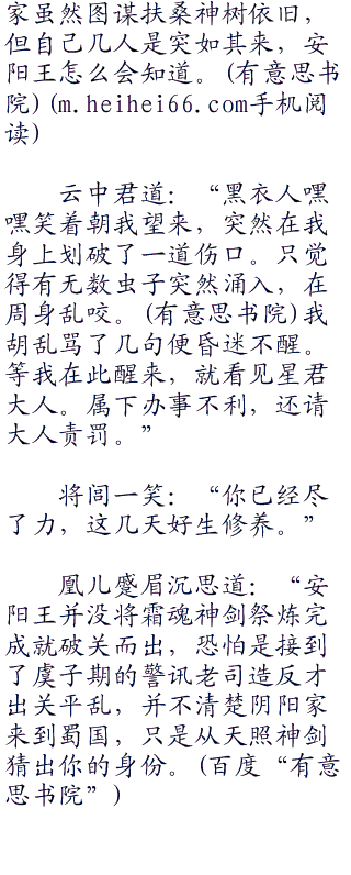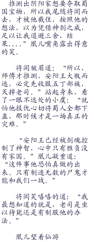 云中君道:“当日我从蝠血洞救出小虞公主,遵照星君大人的命令,只是暗中保护一直没有露面,一直跟随到了樱花谷,小虞公主在也没有露面。我也就在谷外