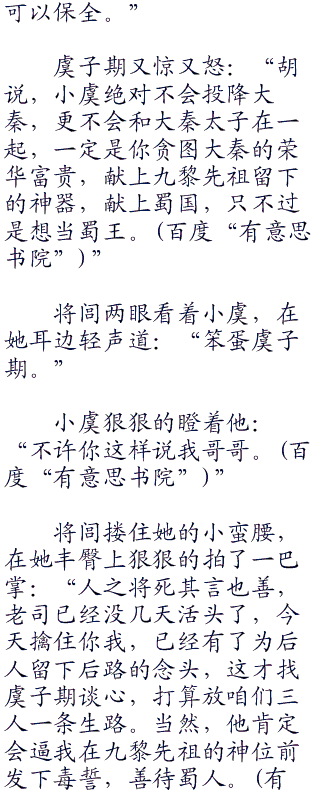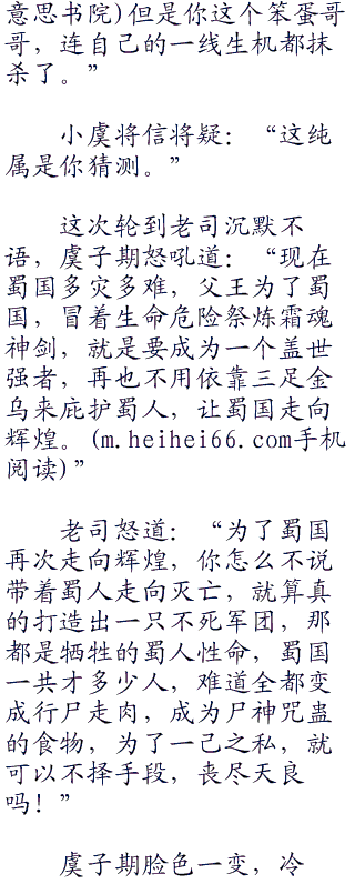 虞子期沉默不语,好久才道:“你对蜀国的贡献有目共睹,这种功劳谁也抹杀不去,但是老司,你究竟是为了什么背叛虞渊王族,做出这种不忠不义之事。”