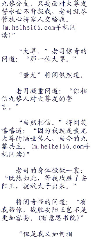 “这样说也对。”将闾笑问道:“善待九黎族人,我可以办到,甚至让他们拥有和老秦人一样的待遇。但是,你也知