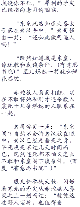 突然有人怒喝:“老司,你给我出来。”声音清越如同凤吟,但是却震得赤蛇族人耳中嗡鸣震响,十几条铁鳞蟒和花豹从神殿中急扑而出。