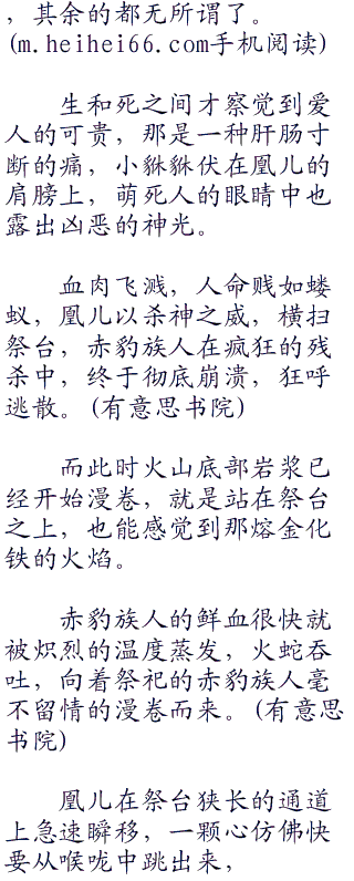 凰儿娇嗤声中,电光飞舞,杀气冲天,惨叫声不绝于耳,鲜血飞溅,断头,断肢接连不断的被高高抛起,落入火山底部。