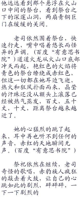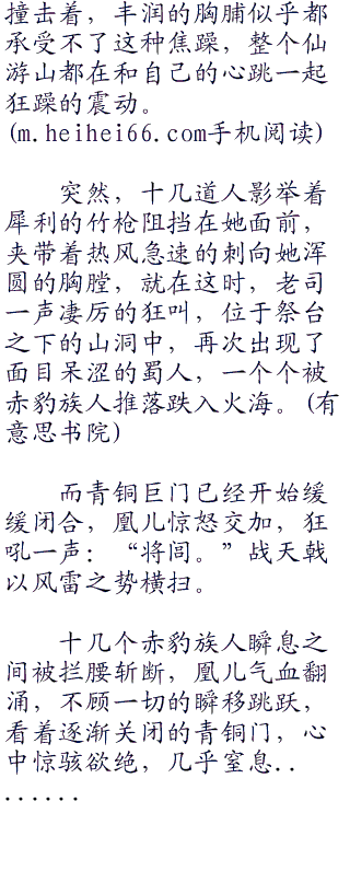 凰儿身体电光流逝,顷刻之间已经飞跃祭台,老司周围的赤豹族人大声呼喝,竹枪如林,寒芒刺眼,在火光的映射下,每个人脸上都带着惧色。