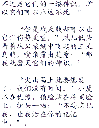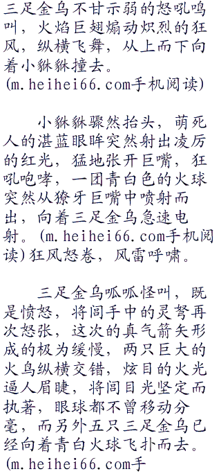 “图腾圣兽,三足金乌。”小虞贴在将闾背上绝望的呐喊,凶残的图腾圣兽,又怎么会让到口的祭品逃脱。