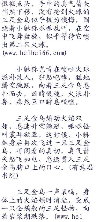 手松箭飞,真气弩箭犹如流星,滑过便是火山灰的天空,从三足金乌巨大的身体中一穿而过。