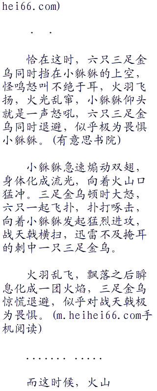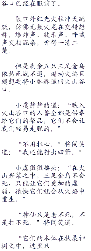 电光星火之间,那圆形的火山口越来越近,也越来越大,已经可以清楚的看见,在山口之外,火光闪耀了天际,星辰暗淡。