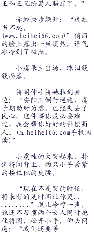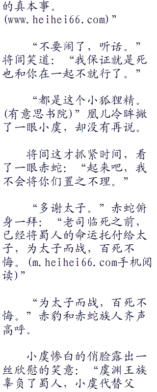 赤蛇俏脸含悲,看着嘴角带笑的凰儿,在她背上若无其事的将闾,还有默然不语的小虞,在她身后,站着变成白痴的虞子期和他几十个服食了失神丹的侍卫,在后面就是残存的赤豹和赤蛇族人,千人大族,现在已经不足三百人,而且人人面带惊恐,骇然失色。