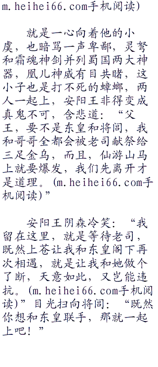 安阳王脸色大变,眼中突然出现一阵懊悔悲凉,低头看着手中的霜寒神剑,缓缓道:“当年阴阳家的焱妃降服了一只三足金乌,也让剩余的九只受了重伤,藏在扶桑神树中修养,那一段时间,蜀国赖以生存的暗黑森林野兽肆掠,不得不退到仙游山。
