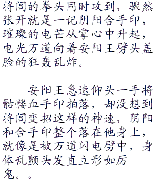 他却不知道,将闾自从行走江湖,就没当自己是个前辈高人,身为大秦的太子还有什么比自己的命更重要,战斗本来就是你死我活,当然手段尽出百无忌惮。
