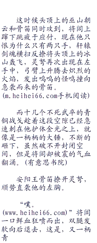 一人拼命万夫莫当,更何况拼命的不仅仅是安阳王一个人,不死武卒根本就不畏惧将闾犀利的剑芒,即便是被斩成两段,手中的战戈依然向着将闾疯狂穿刺。
