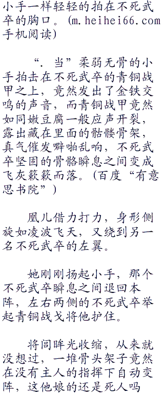 刚想喝止凰儿,就听她琼鼻中一声冷哼,美眸中闪过一丝令人心惊胆寒的戾色,身体一晃就朝着身边不远的不死武卒杀去,小手翻转就抓住了一柄青铜战戈,用力一推战戈的把柄瞬息撞进了不死武卒的青铜战甲,真气催发将里面的骷髅震成粉碎,前排的不死武卒瞬息之间战戈并举向着她曼妙的身体刺来。