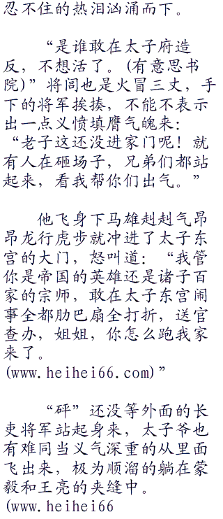 就是作为补偿,在盖一座东宫,你也得换换地方啊!这完全有省钱的嫌疑。除了大门变了,牌匾换了,摘星楼还是摘星楼,月台还是月台,就连里面飞舞的尸神咒蛊,也是星星点点,不管是谁偷偷潜入都