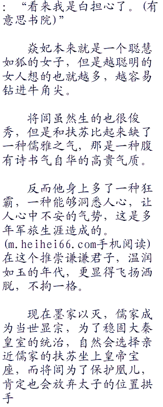 但这件事不仅关系到大秦皇室内部的争斗还有诸子百家的较量,朝堂之险远胜于江湖,在燕国王室混迹多年的焱妃,在这一方面的经验可不是晓梦和雪女可比的。