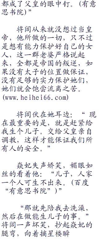 “你是说他是....”焱妃话还没说完,樱唇已经被他堵上,支支吾吾声中,就听在他耳边道:“说破天机就没意思了。明天的大朝会,就能见分晓。”