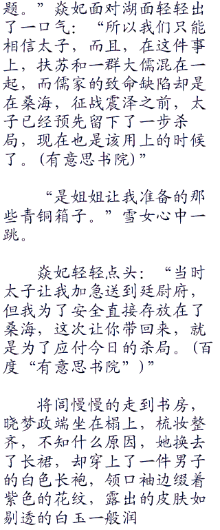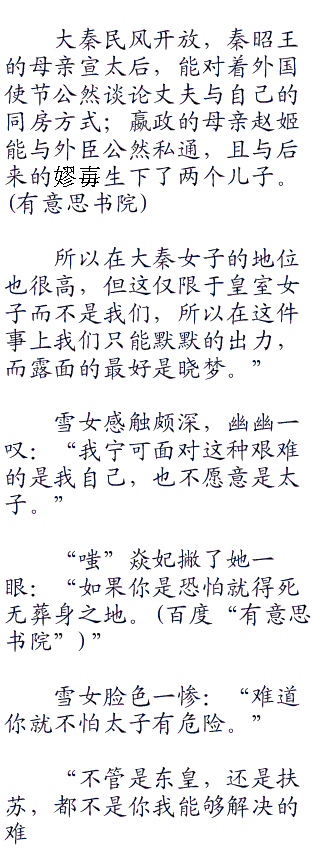 雪女被她说的面红心跳,想起当年被凄惨的遭遇,虽然号称燕都的传说,也不过是一个舞姬,而现在却是大秦