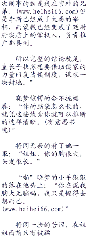 晓梦冷冷一笑:“历次你回到咸阳,父皇都让赵高去城门迎接你,而这次却换成了长吏蒙毅,而且他昨天晚上也留在了东宫,你也不想想这是为什么。”