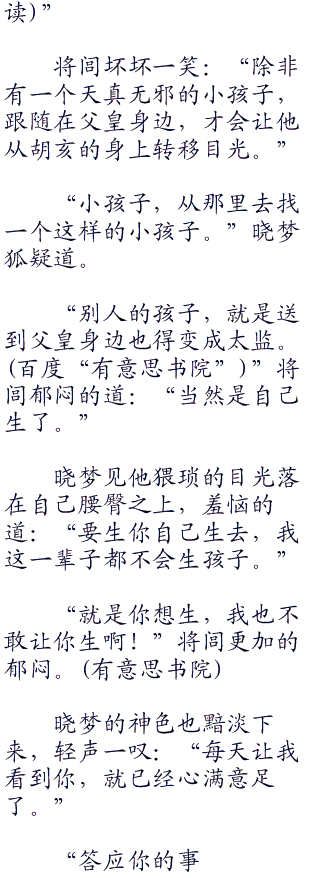 晓梦默然:“我现在才明白,为什么这段时日父皇总爱找我聊天。”