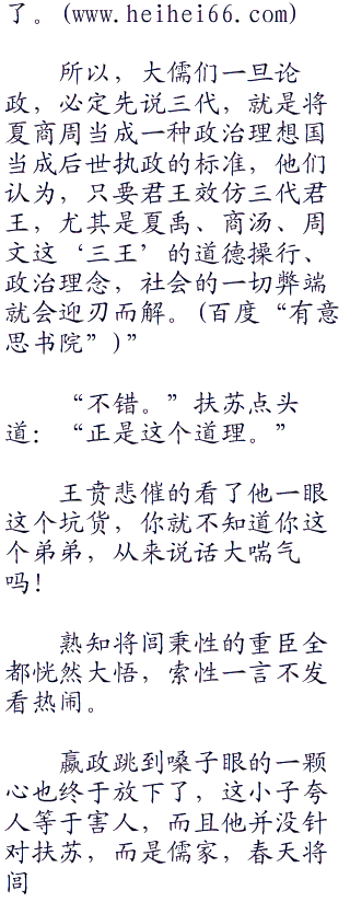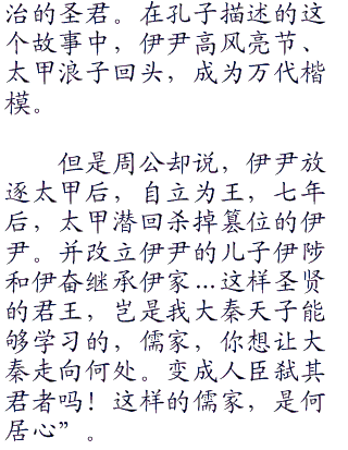 将闾一找到说话的机会,别人想张嘴也就不可能了:“所以韩非子在说疑中说,舜逼尧,禹逼舜,汤放桀,武王伐纣,此四王者,人臣弑其君者也!’”
