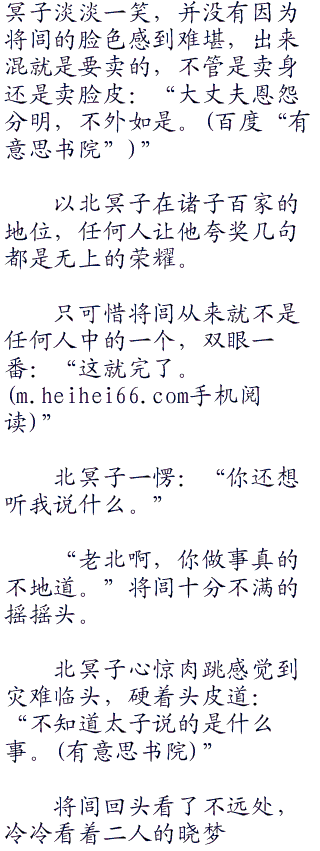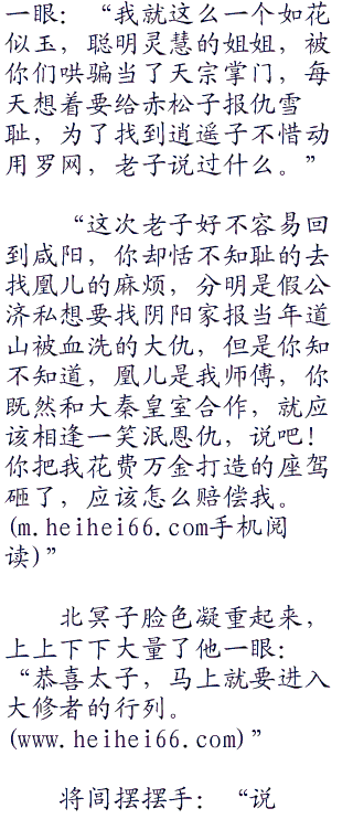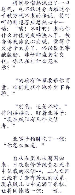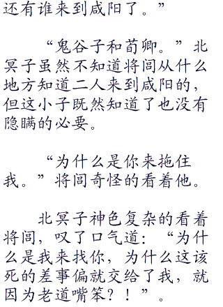夏无且就是天宗掌教晓梦的师傅北冥子,对这个老不死的,将闾从来就不缺乏尊敬,但他偷偷的前往渭水,和凰儿一战,却让将闾对他充满了鄙夷。