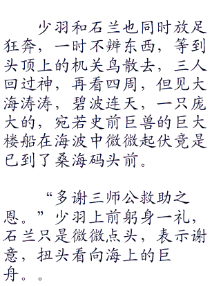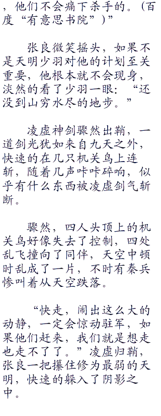 眼看天明已经被机关鸟上的秦军的弩箭瞄准,众人耳畔突然听见一阵哗啦碎响,一道剑光突然之间升起,剑气激昂,荡起天明,少羽和石兰的衣衫飞扬,猎猎作响。