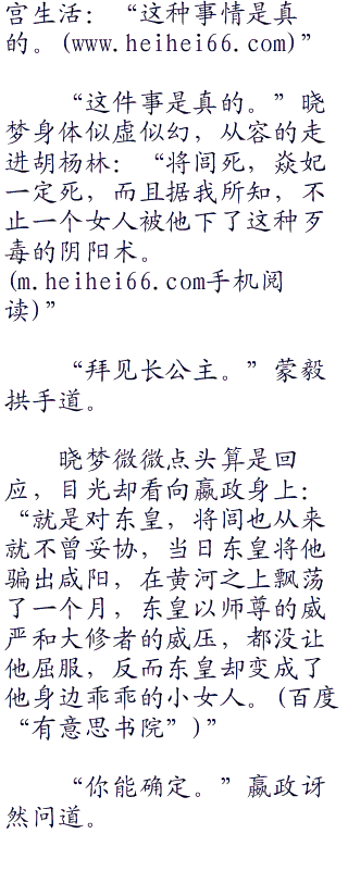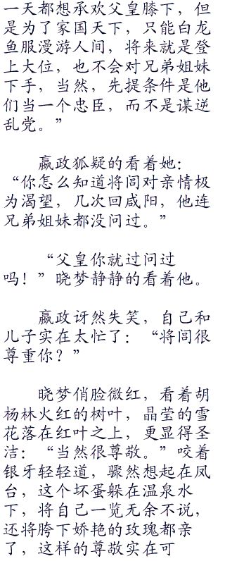 “这句话你已经说过了。”嬴政大笑:“但是归来我拿他怎么办,他对女人这样执着,并不是天下之福啊!”