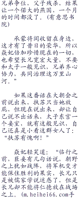扶苏脸色稍缓:“焱妃说重了,将闾落难,扶苏也有责任实在惭愧。”