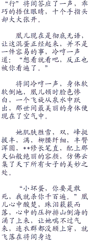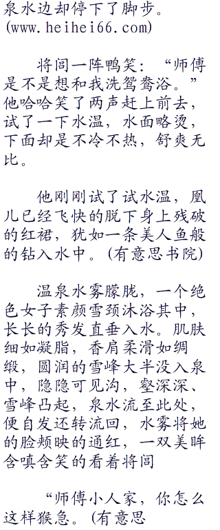 温泉,将闾看的大喜,急忙向着泉水跑去。他动作快,但是凰儿的速度更快,才走了几步,就听耳边风声飘过,凰儿身形如电向着温泉疾奔,脸上全是欣喜之色,到了