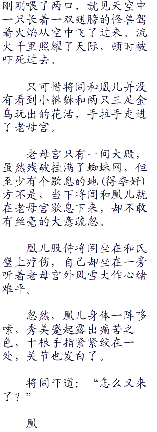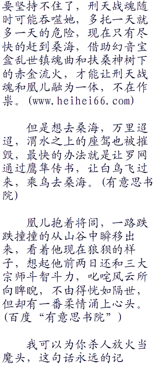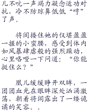 二人一唱一和,不由得全都痴了,一个不舍不弃,一个生死相依,凰儿嫣然笑道:“我们出谷吧!”这是一生的承诺,也是一辈子的追随。